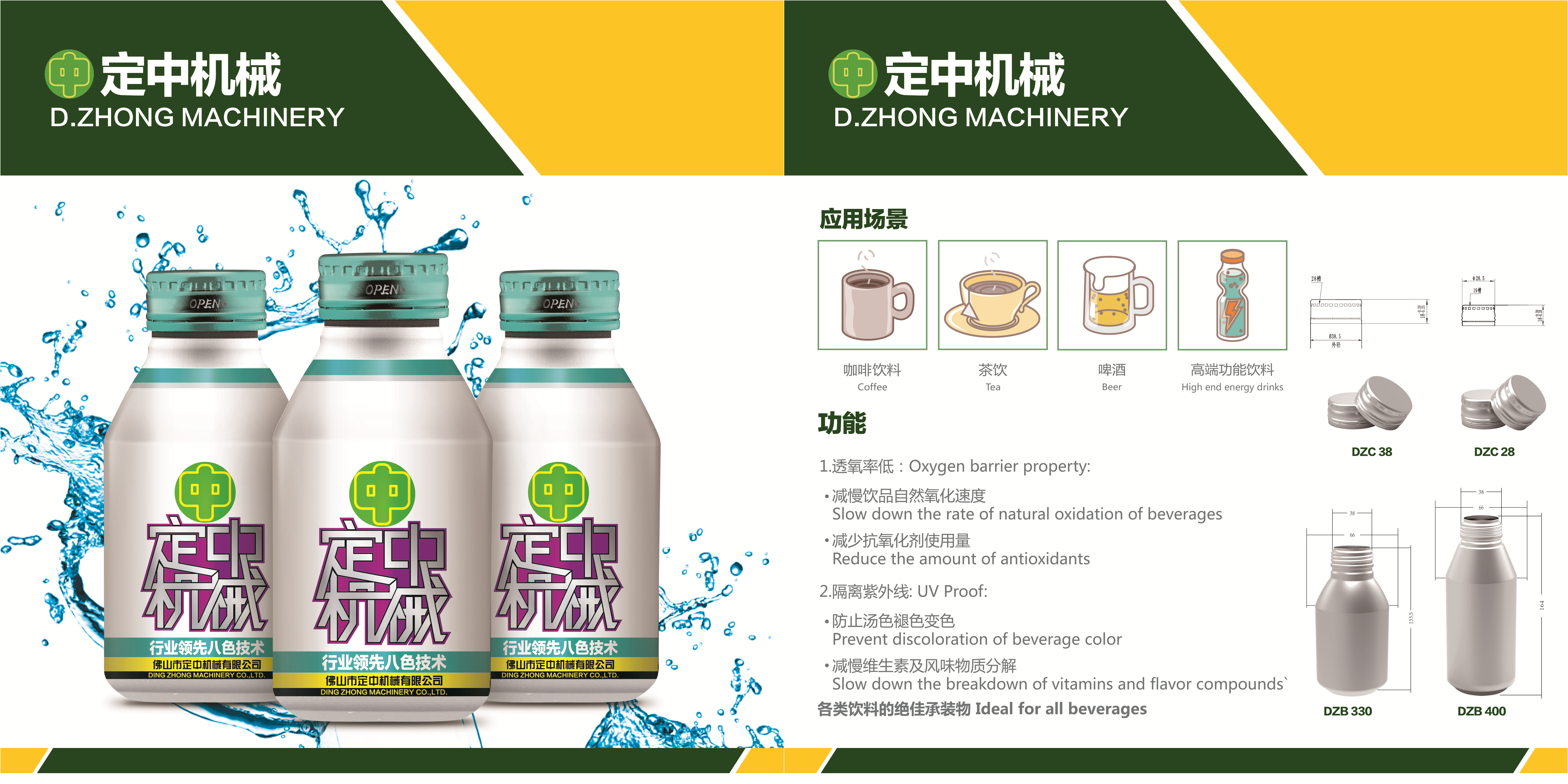 佛山市定中机械有限公司是广东省为数不多的民营科技,高新企业,雄鹰计划支持企业。它是国内颇具规模从事设计、制造成套“皇冠瓶盖(啤酒盖)全自动生产线”产品的专业制造商。我们的定中牌“皇冠瓶盖全自动生产线”产品已获得多项国家专利。公司客户遍布北京、上海、广州、河南、山东、顺德、昆明、长春、武汉、杭州、东莞、大理等全国多个大中型城市。定中机械不仅被国内盛名的大型包装企业选用,而且现已远销西班牙、巴西、越南和菲律宾、肯尼亚等地,深得广大客户的认同和青睐。
